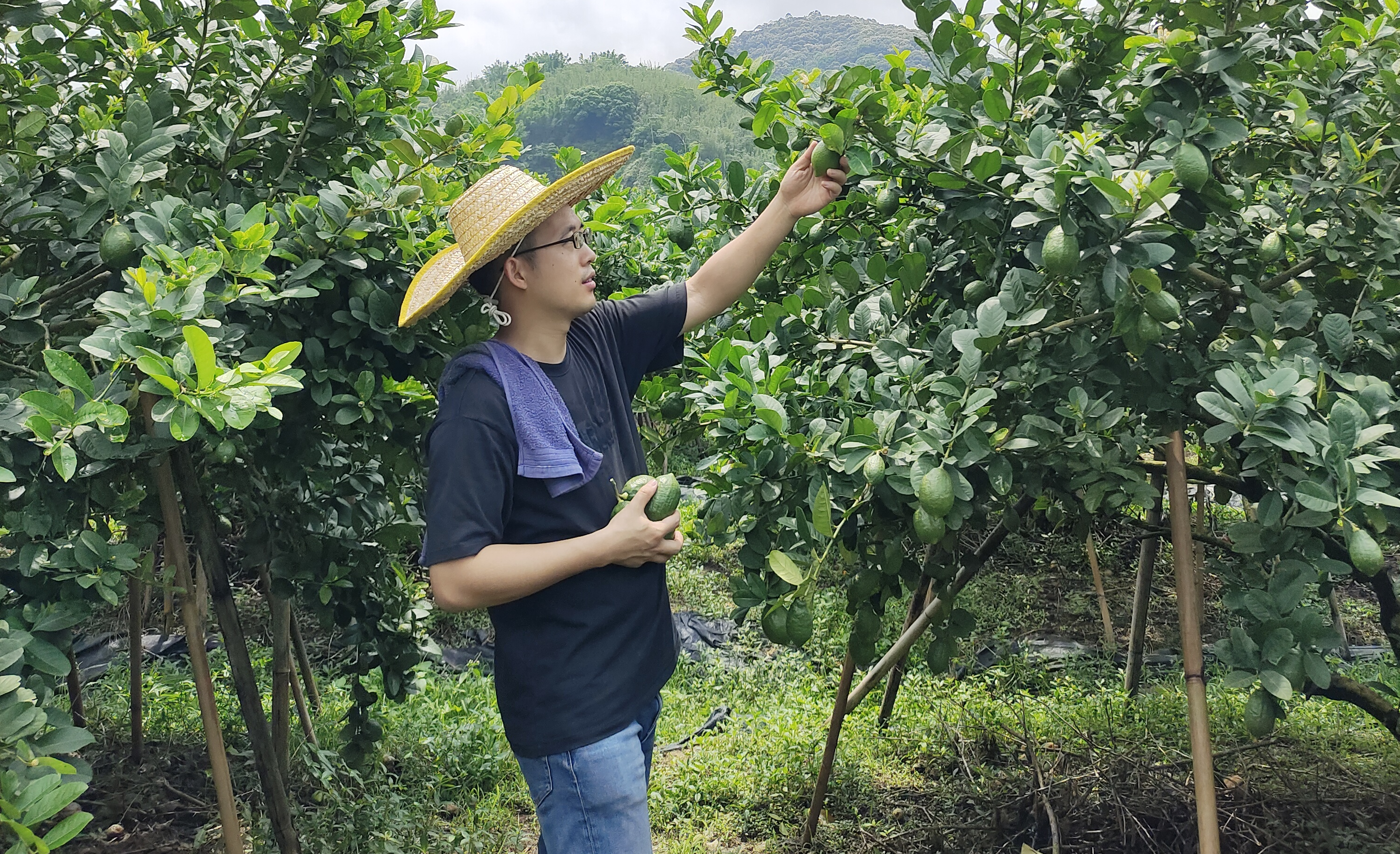 穿着白衬衣、一副黑框眼镜,斯文白净的冯冠杰看起来并不像一名种植户。然而,也正是这名沙田柠檬农产品专业合作社的首位大学生,为当地的柠檬种植注入一股“新风”。